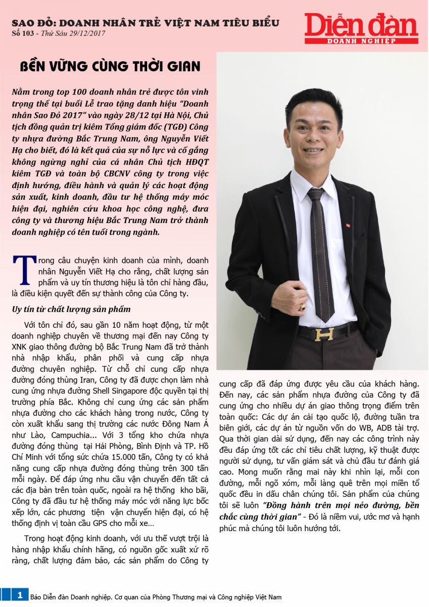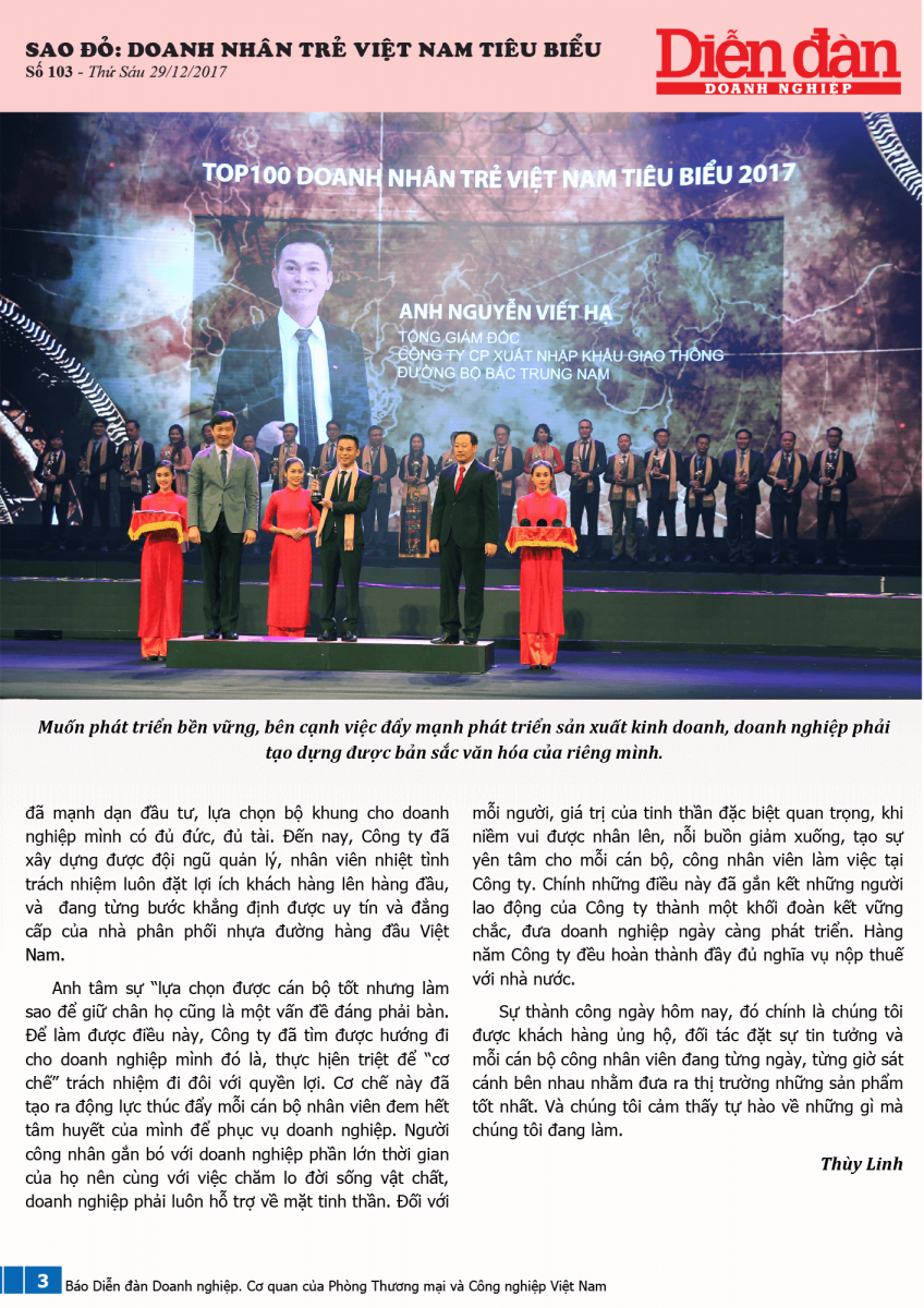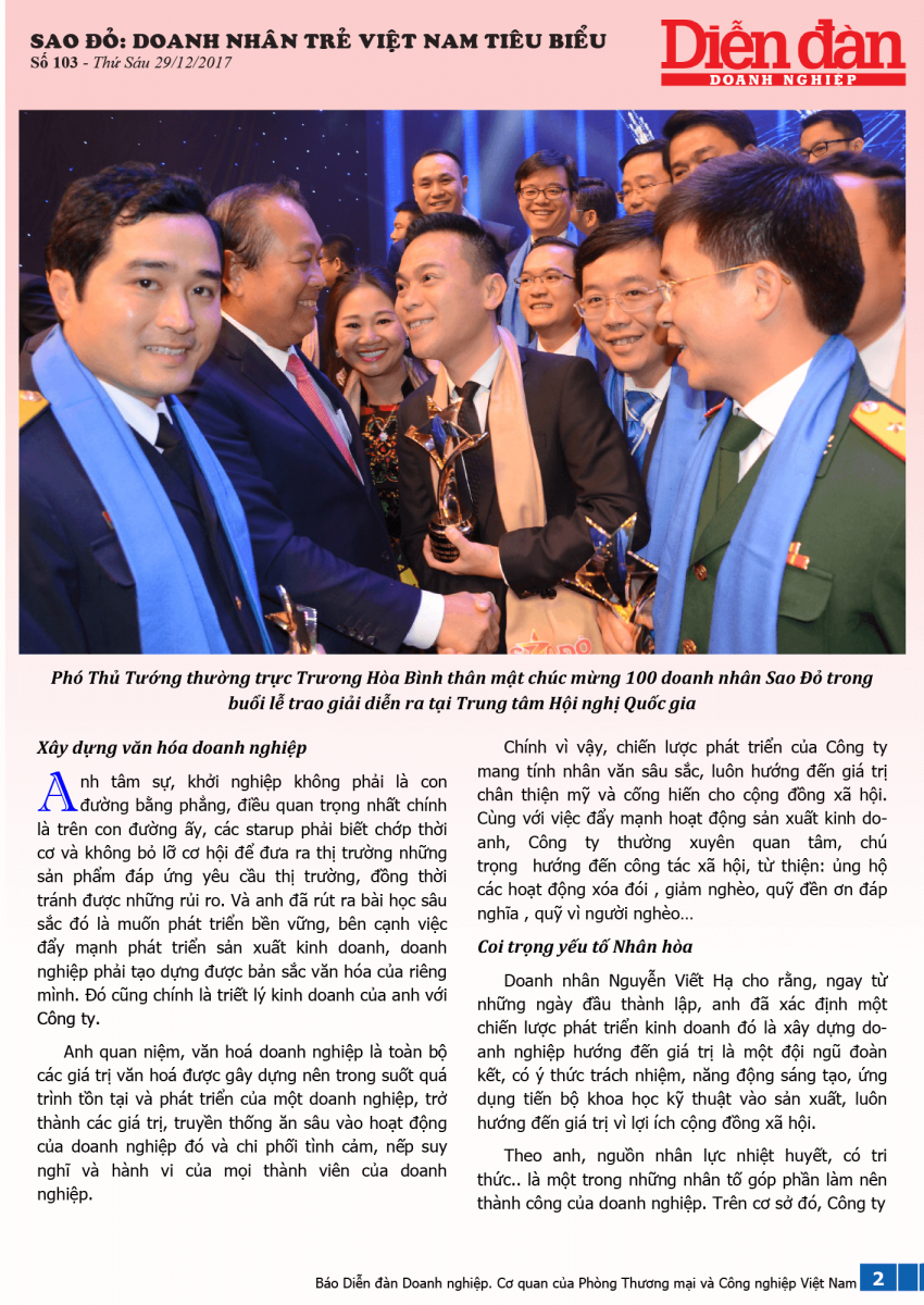 (ÔNG) NGUYỄN VIẾT HẠ, DOANH NHÂN TRẺ VIỆT NAM TIÊU BIỂU NĂM 2017
